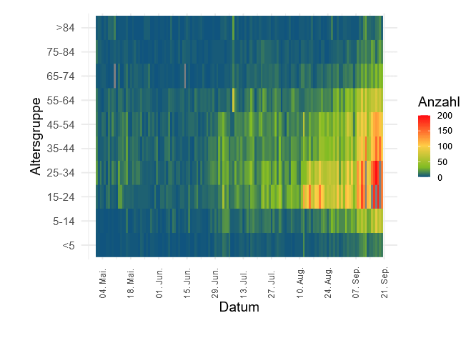 Die Infektionszahlen wachsen offenkundig in die Breite. Waren im Sommer vermehrt junge Menschen betroffen, sind es seit September auch gehäuft Menschen über 55 und auch in den älteren Altersgruppen steigen die Fälle wieder an. Das sind die Treiber der Intensivzahlen, der Menschen, die mit dem Tod ringen (werden). Jüngere Menschen sind tendenziell eher symptomfrei und erkranken seltener schwer. Auch bei den Kindern unter 15 nimmt die Zahl deutlich zu.