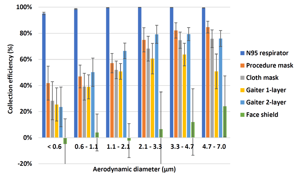 Experimental studies clearly show why face shields should only be worn with masks. The Swiss Health Office warned of face shields in Mid July as infections could be traced due to worn face shields in restaurants. Chin shields hardly covering the nose are even more useless. Current guidelines issued by the Austrian Health Office AGES still refuse to acknowledge the importance of aerosol transmission. The vast majority of the Austrian population, irrespective of their educational background is convinced that the virus is mainly transmitted by large droplets and plexiglass shields were sufficient to block the drops. However why does someone wear a face shield without a mask at all? Is it to protect himself from accidently being splashed on? In general, wearing a mask has been considered as a solidary act to protect others if being (asymptomatic/presymptomatic) infected. So when people with a face shield breath and talk, most of their aerosols with leak from the shield. When they cough and sneeze, most of their droplets will fall to the ground – or onto the plate with food and drinks waiters carry to their customers. It is moreover alarming that quite a lot of elderly and sick people wear these face shields without a mask. If I were you, I would do everything to protect myself as much as possible. Elderly and sick people are at a much higher risk to die, so why playing with god?