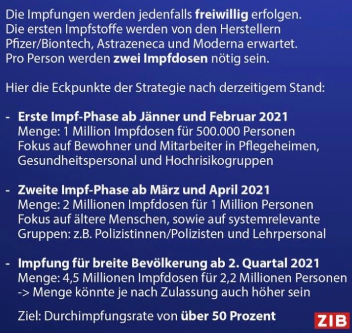 Mit dem angedeuteten Zeithorizont der Impfstrategie ab 2021 wird es mit der angekündigten “zurück zur gewohnten Normalität ab dem Sommer” knapp oder in anderen Worten ausgedrückt: Zu weit aus dem Fenster gelehnt. Das heißt, die grundsätzlichen Verhaltensregeln (Abstand, Maske, Hygiene, Lüften) müssen bis weit in den Sommer 2021 beibehalten werden. Der laufende Lockdown und die angekündigten Massentests nehmen zwar ein paar tausend Infektionen aus dem akuten Infektionsgeschehen, aber erst wenn die Zahl der Neuinfektionen niedrig genug ist, damit zügige PCR-Tests, Contact Tracing, Isolierung/Quarantäne wieder funktionieren, hat man die Kontrolle über die Pandemie zurück. Fallen dann aber zu rasch Reisebeschränkungen und lässt man Gastronomie und Tourismus zu schnell anlaufen, ist der dritte Lockdown unausweichlich. Anders gesagt: Es geht sich zeitlich nicht aus, mit den bestehenden schlecht umgesetzten Maßnahmen bis zur Durchimpfung auszuharren. Dazu gehört auch ein grundlegend anderes Verständnis von Abstandsregeln und eine Verbannung der Tröpfcheninfektion als Hauptübertragungsweg in die Geschichte (Fang et al., 26.10.20)