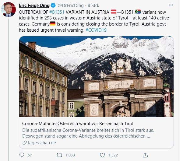 Knapp ein Jahr nach Ischgl ist Österreich wieder prominent in den Schlagzeilen, wenn man kurz davon absieht, dass Mitte November vorübergehend die weltweit höchste Infektionsrate erreicht wurde. Spätestens jetzt sind nicht nur europäische Wissenschaftler beunruhigt, sondern die ganze Welt ist alarmiert worden. Gut so. Gesundheitsminister Anschober hätte an sich ein Durchgriffsrecht nach dem Epidemiegesetz, wie ein Verfassungsrechtler hier erläutert.
