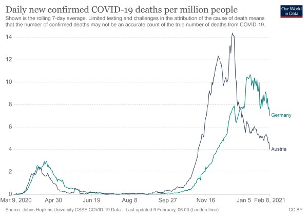 Wichtiger Nachtrag: Nicht, dass das wieder als Vorwurf kommt – ich halte türkisgrün gemeinsam für verantwortlich für den freien Fall von Österreich im Zuge des Pandemieversagens. Kurz hat den Grundstein dafür mit seiner autoritären Spaltungspolitik schon vor vier Jahren gelegt. Jetzt ernten wir die Früchte jahrelanger Hetze gegen Teile der Gesellschaft und die Vereinnahmung “freier” Medien. Der Grund für die jetzige Pandemiemüdigkeit ist vor allem die für alle offenkundige Widersprüchlichkeit eines harten Lockdowns, in dem Skigebiete und illegal geöffnete Hotels der ÖVP-Klientel bedient werden, sonstige private Aktivitäten aber nicht erlaubt oder sogar diskriminiert werden (“rodelnde Migranten am Semmering”). Das untergräbt jegliche Motivation mitzumachen, wenn es dann keine klar kommunizierten Ziele gibt, die auf Dauer eine Verbesserung bringen, statt ständig auf und zuzusperren.