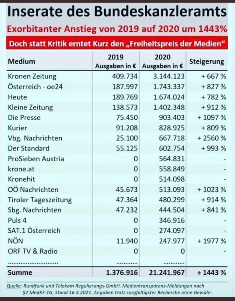 Der Zeitungsmarkt in Österreich ist von Inseraten abhängig. Der Boulevard sowieso ÖVP-nahe Tageszeitungen in den Bundesländern werden besonders stark gefördert. Seit Kurz Bundeskanzler ist, wurde der KURIER-Chefredakteur Brandstätter abgesetzt und durch die neoliberale Salomon ausgetauscht. Bei der WIENER ZEITUNG wurde Walter Hämmerle Chefredakteur, er ist gleichzeitig Mitglied im Präsidium des Friedrich-Funder-Instituts, der ÖVP-Medienschule. Bei der KRONE wurde der SPÖ-nahe Innenpolitik-Journalist Claus Pandi nach Salzburg versetzt. Chefredakteurin Alexandra Föderl-Schmid hörte nach 27 Jahren Zugehörigkeit beim STANDARD im August 2017 auf.