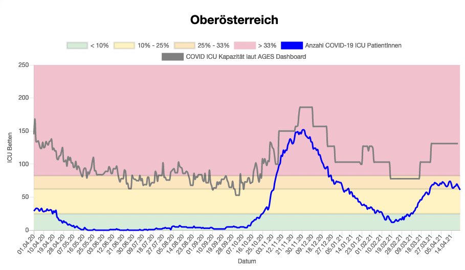 - Irreführende Darstellung der Intensivbetten, um unendliche Kapazität zu suggerieren (siehe Abbildung oben). Da Lockdown mit Zusammenbruch des Gesundheitssystems argumentiert wird, kann Lockdown ewig hinausgezögert werden. Immer genug Betten frei, befeuert Unmut der Bevölkerung gegen die Maßnahmen: “Krankheit harmlos, LongCovid existiert nicht, nur alte/vulnerable erkranken schwer und es gibt genug Betten.”