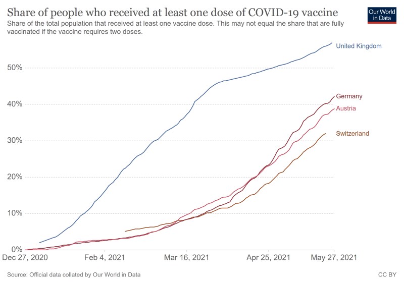 Ja, das erinnert schon ein wenig an Österreich, nicht wahr? Ich hab am Tag 418 bereits ein paar Problemzonen aufgezählt. Österreich hat etwas mehr als Uruguay teilgeimpft, aber deutlich weniger als UK. Wir haben glücklicherweise viel effektiven mRNA verimpft. Bei Astra Zeneca warten aber noch viele auf die zweite Impfdosis und mit dem Strecken der Teilimpfintervalle von drei bzw. vier Wochen auf sechs Wochen laufen jetzt eben viele, viele Menschen mit Teilimpfung herum, die gegenüber der Indischen Variante (aber auch den anderen Varianten) vulnerabler sind.