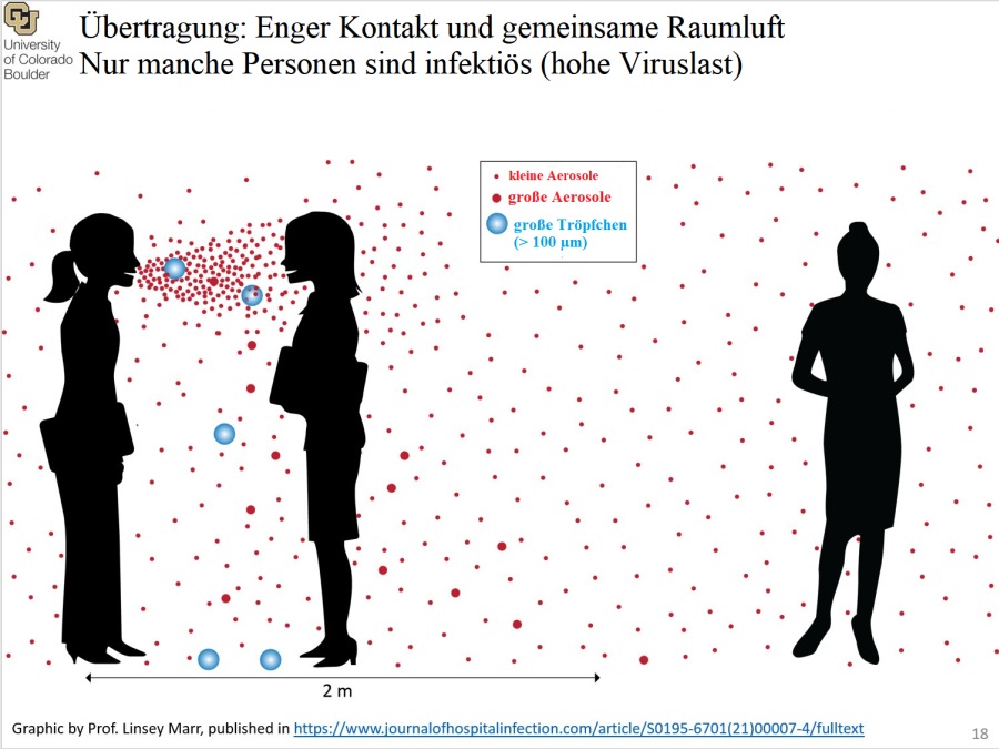 Manchmal wird unscharf von Aerosoltröpfchen gesprochen, aber die Unterscheidung in Aerosole und Tröpfchen hat fundamentale Auswirkungen auf die zutreffenden Maßnahmen: