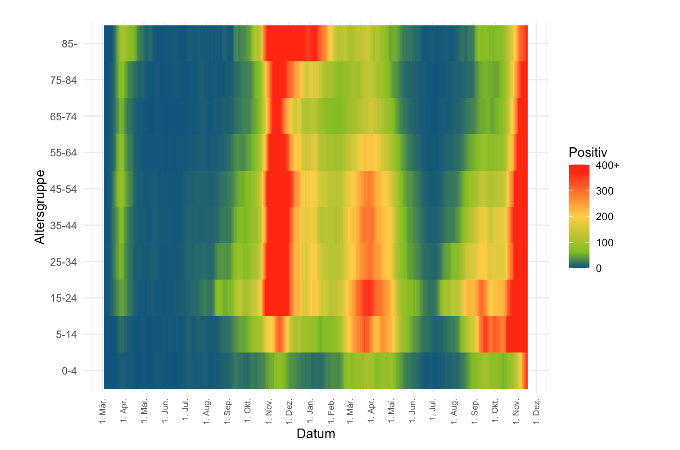 Die erste Welle ging von 50jährigen Skitouristen aus (“Elterngeneration”), ab der zweiten Welle immer zuerst von den jüngeren (unter 30) und dann über die Elterngeneration zu den Großeltern. In der vierten Welle sind die allerjüngsten mit Abstand am stärksten betroffen, weil die Schutzmaßnahmen in den Kindergärten und Schulen nicht ausreichen – und DELTA von der Ansteckung her in der Größenordnung von Masern zu finden ist.