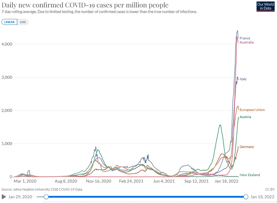 Da die Impfung nicht mehr vor einer Infektion mit OMICRON schützt, gilt die dritte Impfung vor allem der “Reduktion der Krankheitslast” (siehe Impfpflicht). Bei der internationalen Entwicklung steht u.a.