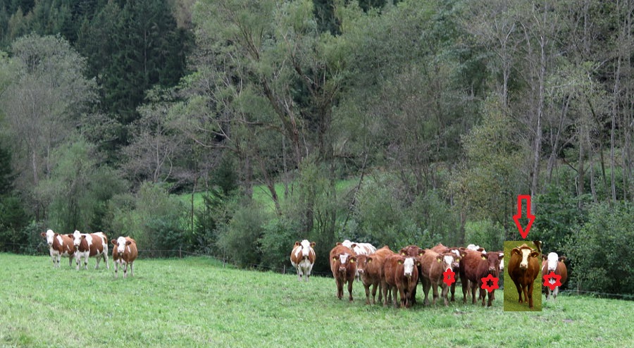 Stell Dir vor, die hier markierte Kuh ist nicht sehr gesund. Lasst sie uns Tante Gretl nennen. Tante Gretl war oft krank, seit sie klein war. Doch sie hat es überlebt und Du magst sie weiterhin sehr, und sie ist ein geschätztes Mitglied der Herde.
