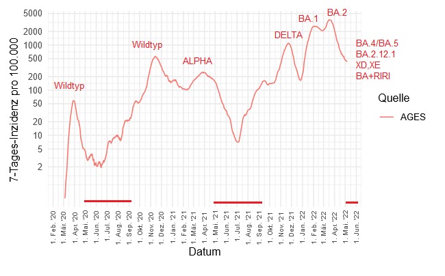 Grafik für die Inzidenzen nach den beiden Benefizkonzerten am 19.3.22 im Ernst-Happel-Stadion (ca. 40 000 Besucher) und am 27.03.22 am Heldenplatz (ca. 100 000 Besucher), Quelle: Statistiker Erich Neuwirth