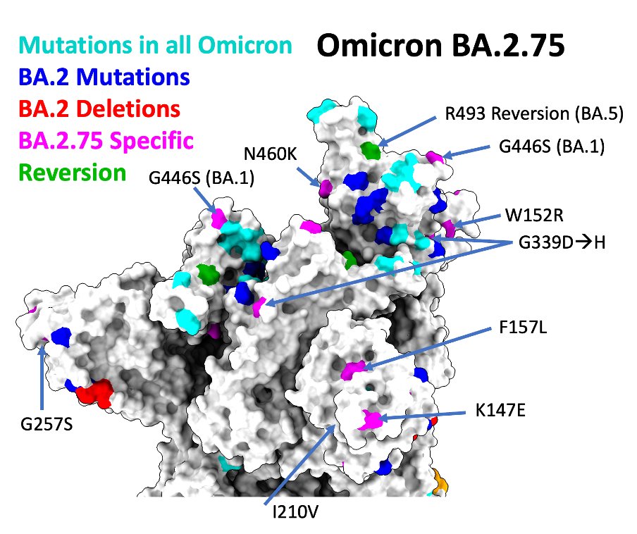 Das heißt auf Deutsch gesagt, dass BA.2.75 die Immunantwort noch besser umgehen kann, also neutralisierende Antikörper durch Impfstoffe oder Infektion sowie therapeutische Antikörper noch schlechter wirken. Ob BA.2.75 auch einen deutlichen Wachstumsvorteil gegenüber BA.5 zeigen wird, ist noch unklar.