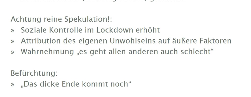 Es können also die Maßnahmen alleine nicht dafür ursächlich sein, dass die Zahl der psychischen Notlagen weiter ansteigt.