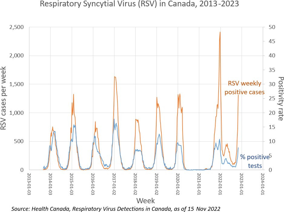 Letztes Jahr gab es viele RSV-Fälle in Kanada, aber die Krankenhäuser waren nicht so sehr überlastet wie jetzt. Heuer begann die RSV-Saison früher, aber die Fallzahlen sind nicht außergewöhnlich hoch. Trotzdem gibt es bereits viele hospitalisierte Kinder.