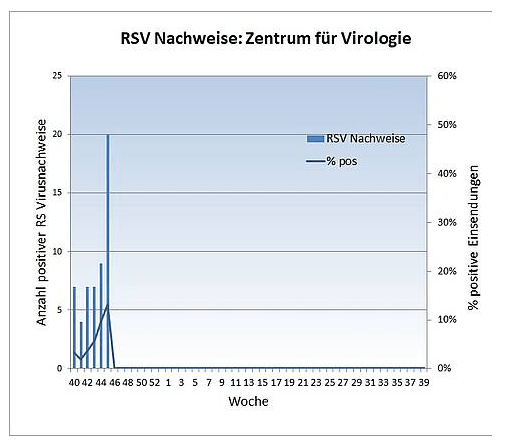 RSV, das Respiratorische Synzytial-Virus, tritt weltweit auf und betrifft den gesamten Atemwegstrakt. Betroffen sind vor allem Säuglinge (Frühgeborene, Kleinkinder). Vom saisonalen Verlauf und Symptomatik her ähnelt es Influenza. Die Sterblichkeit liegt bei 0,2% bei Kindern ohne Vorerkrankungen, 1,2% bei Frühgeborenen, 4,1% bei Kindern mit Lungenfehlbildung und 5,2% bei Kindern mit angeborenem Herzfehler. In Mitteleuropa wird der Höhepunkt der RSV-Saison zwischen November und April etwa im Jänner und Feber erreicht.