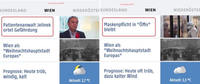 ORF.at-Redaktionssystem funktioniert offenbar so, dass ein Artikel umso länger auf der Startseite bleibt, je häufiger er angeklickt wird. Hopium verbreitet sich natürlich besser als bad news (Folgen der Durchseuchung)
