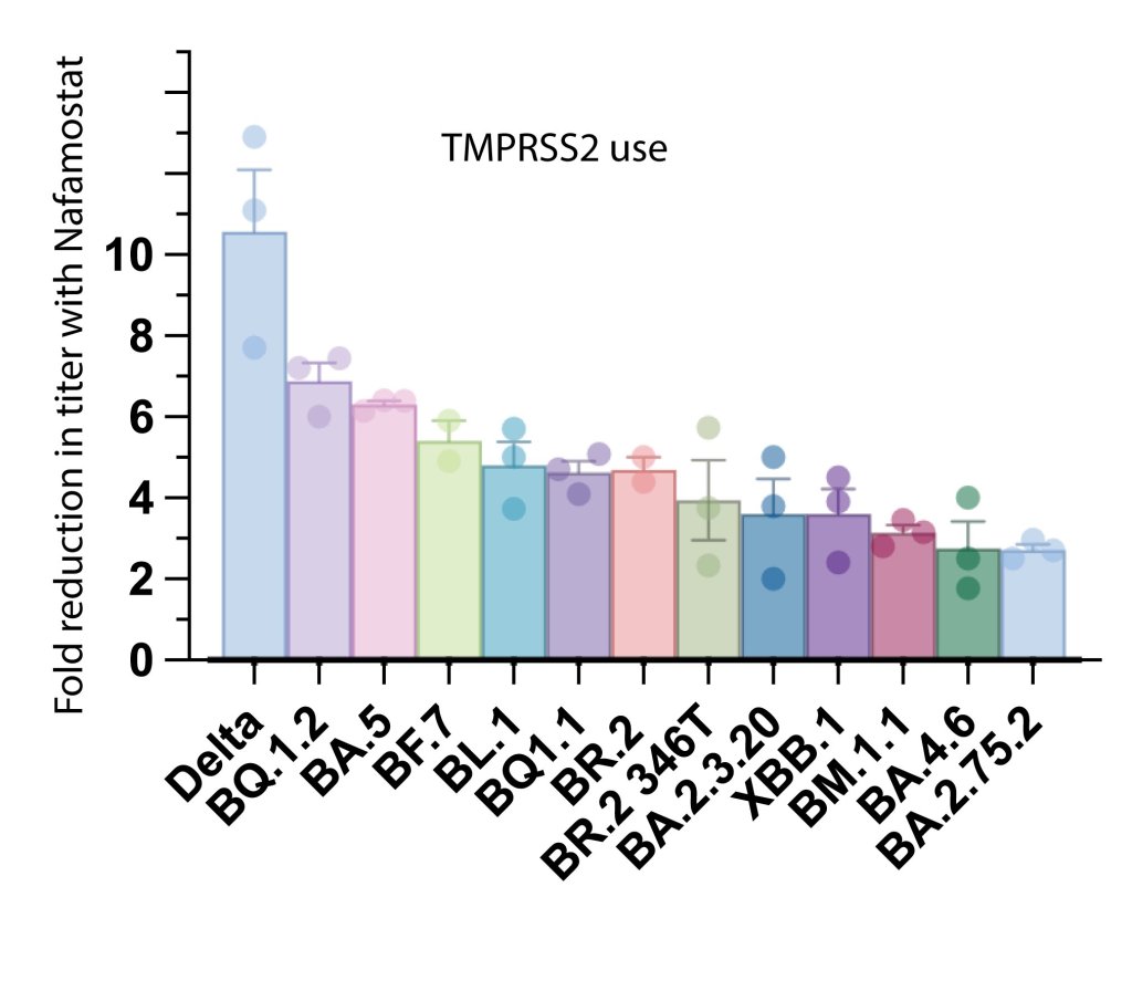 Aggarwal et al. 17.09.22: Viruslast von BQ.1.1 nähert sich DELTA an (rechts) und verwendet TMPRSS2 fast so effizient wie DELTA (links)
