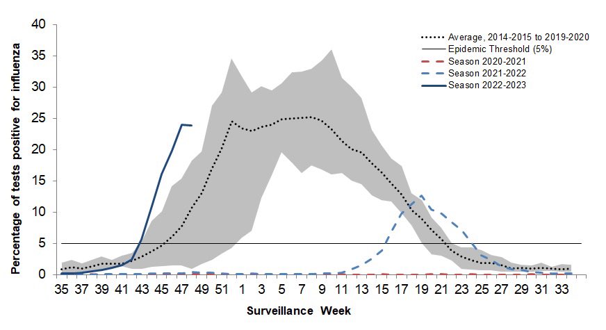 In Kanada ist die Zahl der Hospitalisierungen von Kinder und Jugendlichen unter 16 Jahren weit über denen der Vorjahre, obwohl die Positivrate nicht ganz so krass abweicht. Liegt es an Influenza A (H3N2)? Ist das Immunsystem der Kinder nach wiederholten Covid19-Infektionen geschwächt?