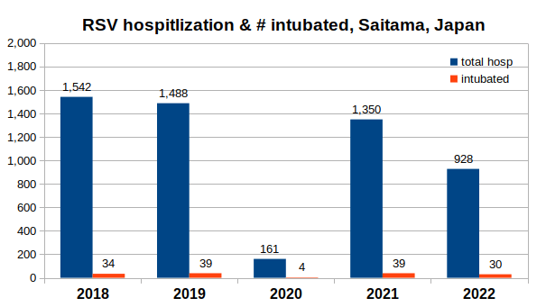 Neue Daten aus Asien zeigen jetzt aber deutlich, wie irreführend der nachträgliche Versuch ist, die Maßnahmen der Vorjahre schlecht zureden. In Südkorea gab es ähnlich wie in Japan 2021 eine höhere RSV-Welle, aber bei gleichzeitig niedrigen Hospitalisierungsraten (Kim et al. 2022)