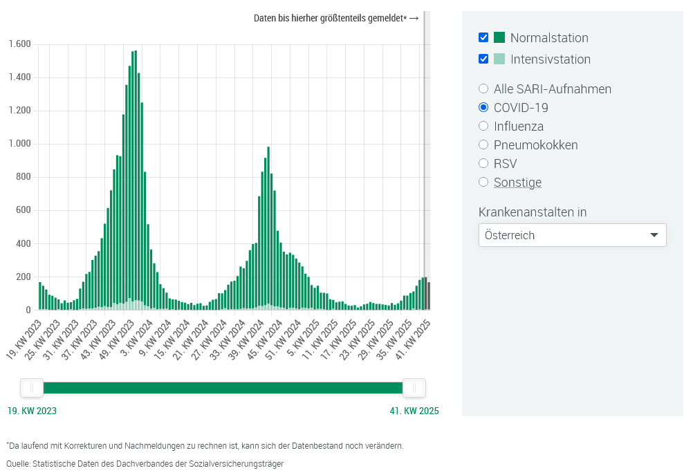 Die Mehrheit der Covid-Patienten starb während der Pandemie auf den Normationen, weil gerade ältere Menschen häufig intensivmedizinisch nicht mehr behandelt wurden (Kosten-Nutzen-Abwägung oder bei Triage nachgereiht). Die Krankheitsschwere ist dank der Bevölkerungsimmunität insgesamt zurückgegangen, das heißt, selbst bei hohen Infektionszahlen werden relativ gesehen weniger Schwerkranke im Spital aufgenommen als in der Akutphase der Pandemie. Der Fokus auf Spitalskapazitäten, erst Recht Intensivbetten, war neoliberales Denken: Es ging nicht um Menschenleben, sondern nur um freie Betten, die man befüllen kann, bis alle Kapazitäten weg sind. Und dann, wenn es keine freien Betten mehr gab, erst dann wurden wieder Maßnahmen eingeführt, die zu spät kamen, weil die Infektionszahlen bereits so hoch waren, dass die Zahl der Schwerkranken noch ein paar Wochen länger stieg.