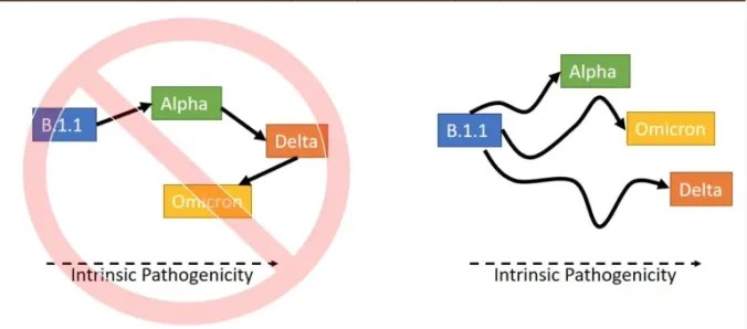 BA.1 sei ein virologisches Zufallsereignis gewesen, doch das britische Beratungsgremium NERVTAG warnte davor, dass die nächste Variante ähnlich schwere Verläufe versuchen würde wie vorhergehende Varianten.