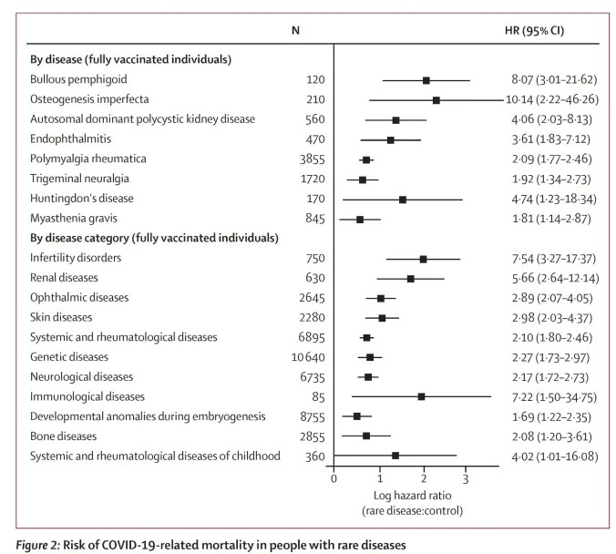 Insgesamt wurden 672 Erkrankungen, die mit erhöhtem Risiko für schwere Verläufe verbunden sind und/oder 72 Erkrankungen mit erhöhtem Risiko für LongCovid gefunden (Pietzner et al. 2024).